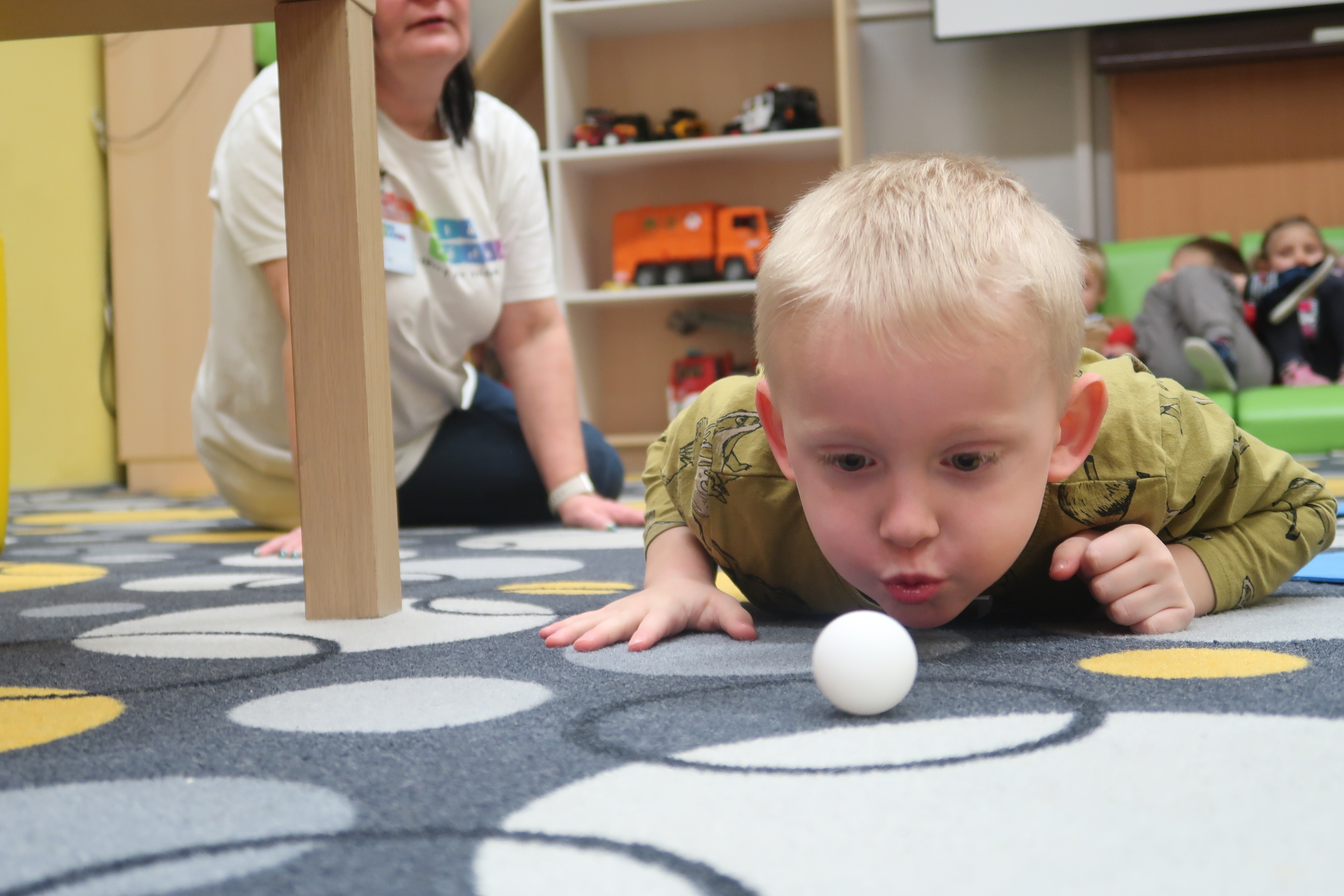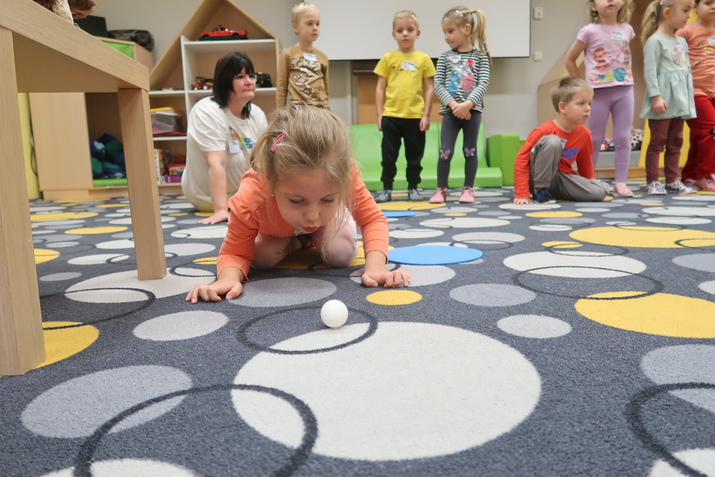 kto potrafi najlepiej dmuchać do piłeczki...