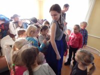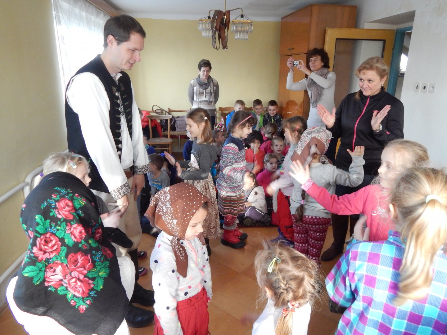 Starsze dziewczynki pomagały góralce z ubieraniem się