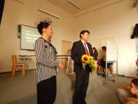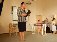 Nowa pani dyrektor przywitała wszystkich na uroczystym zagajeniu roku szkolnego 2018-19 w auli