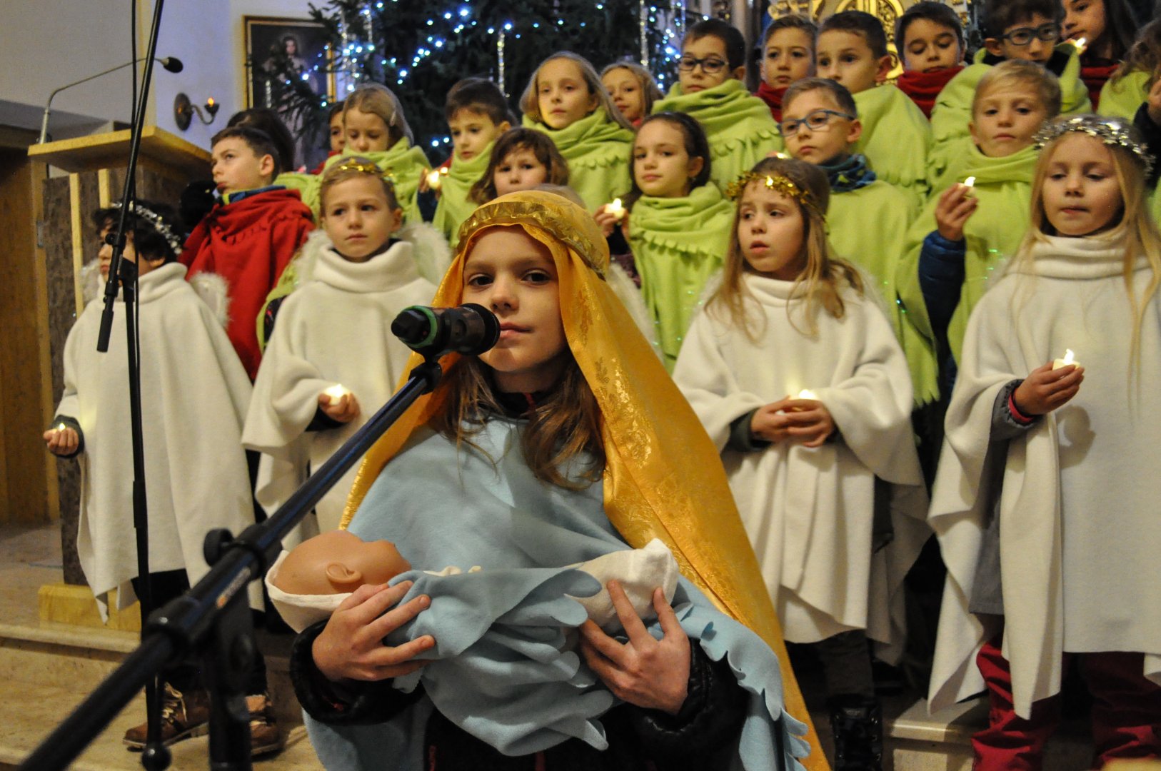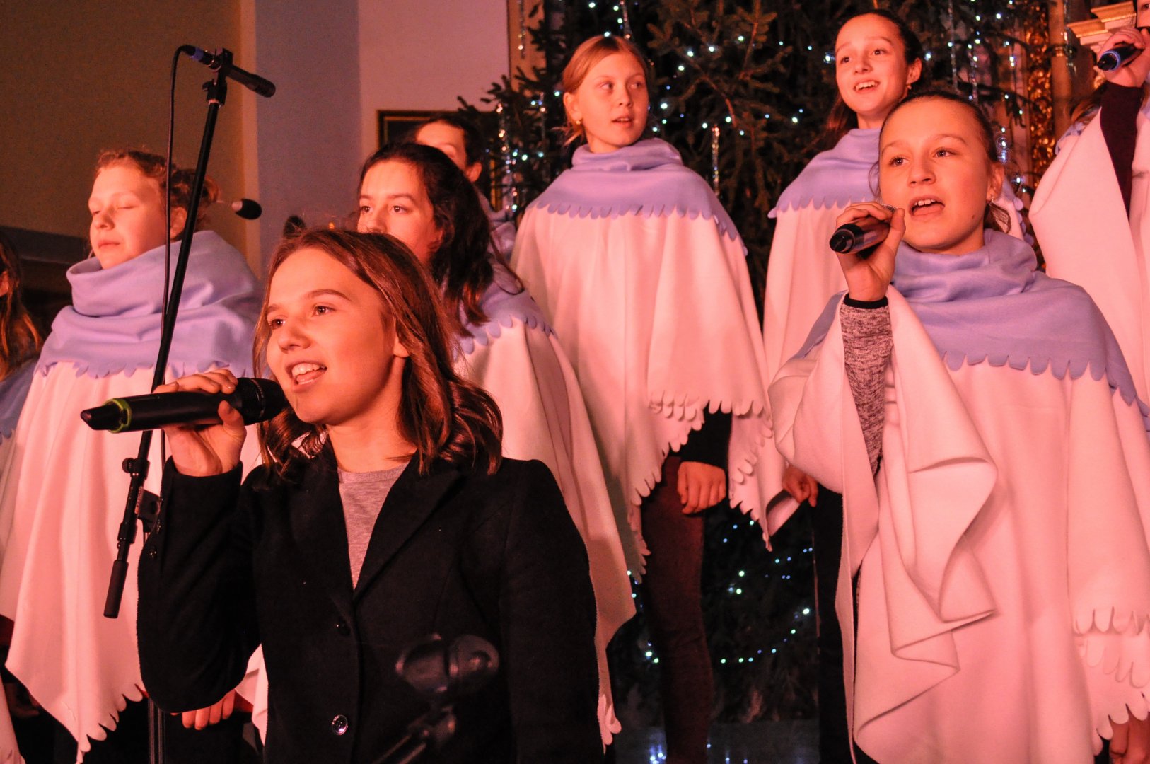 Justyna z klasy dziewiątej zaśpiewała piękną kolędę "Pierwsza gwiazda"