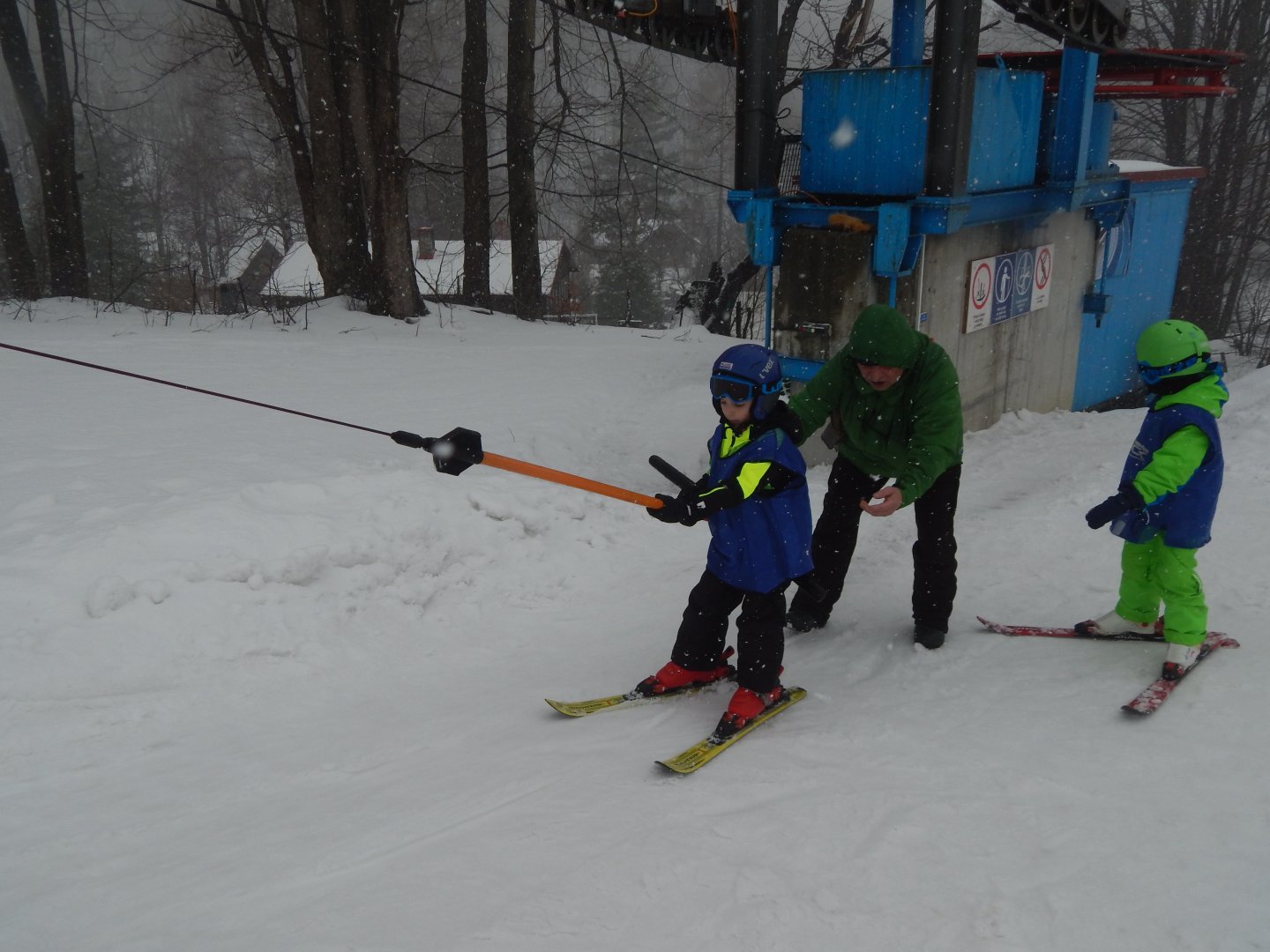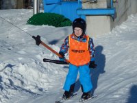 Matyasek i Bartek jeżdżą już na dużym wyciągu narciarskim.