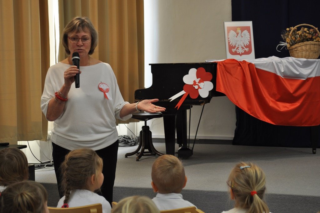 Bogumiła Przeczek opowiada dzieciom, dlaczego my Polacy na Zaolziu świętujemy