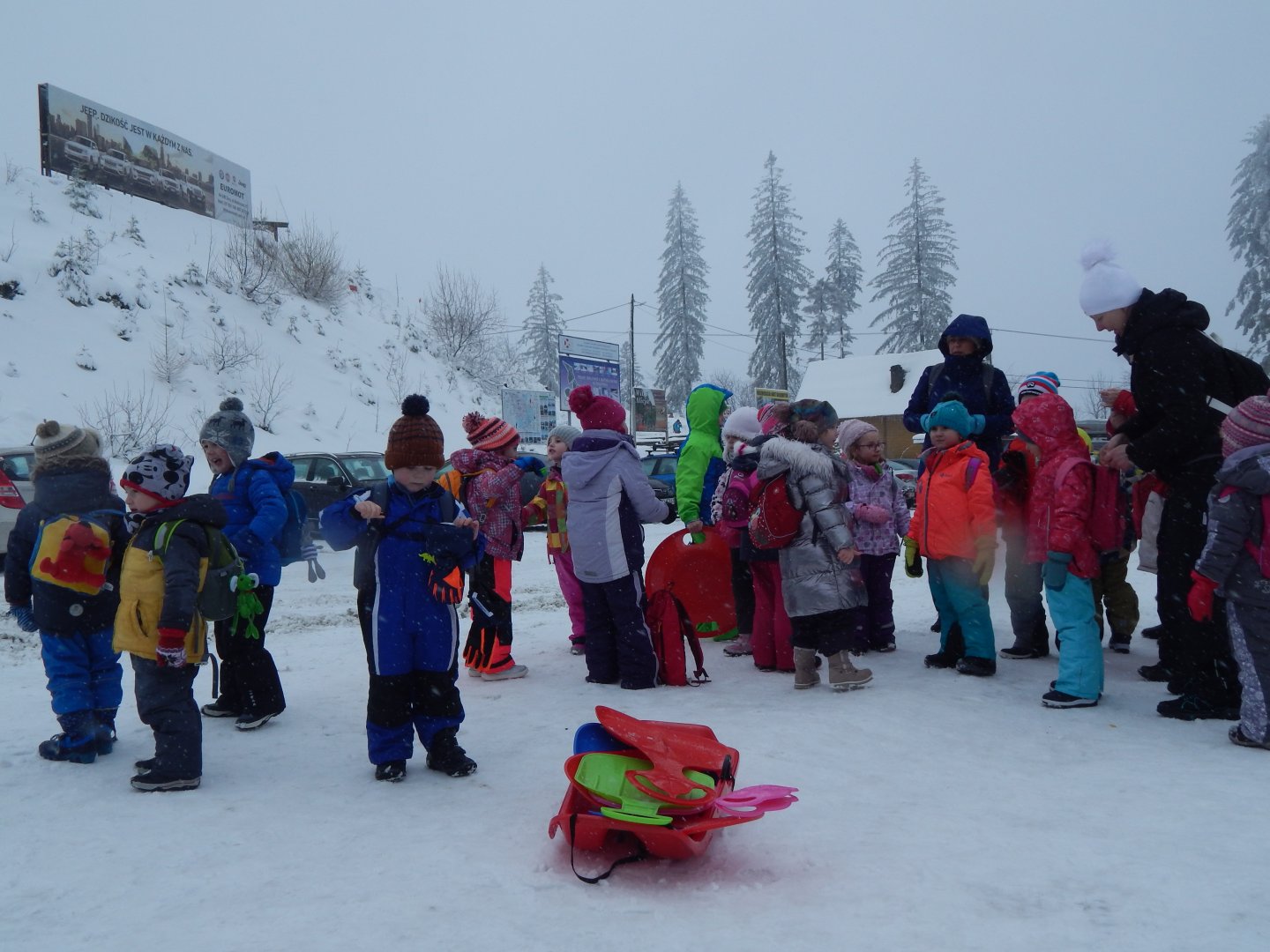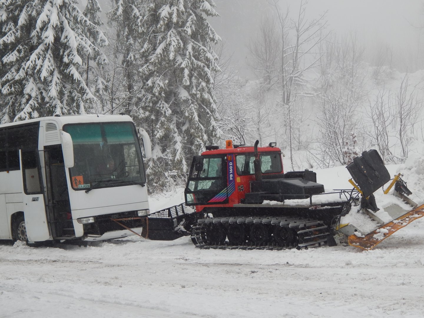 drobna przeszkoda :) nasz autobus ugrzązł na parkingu ...