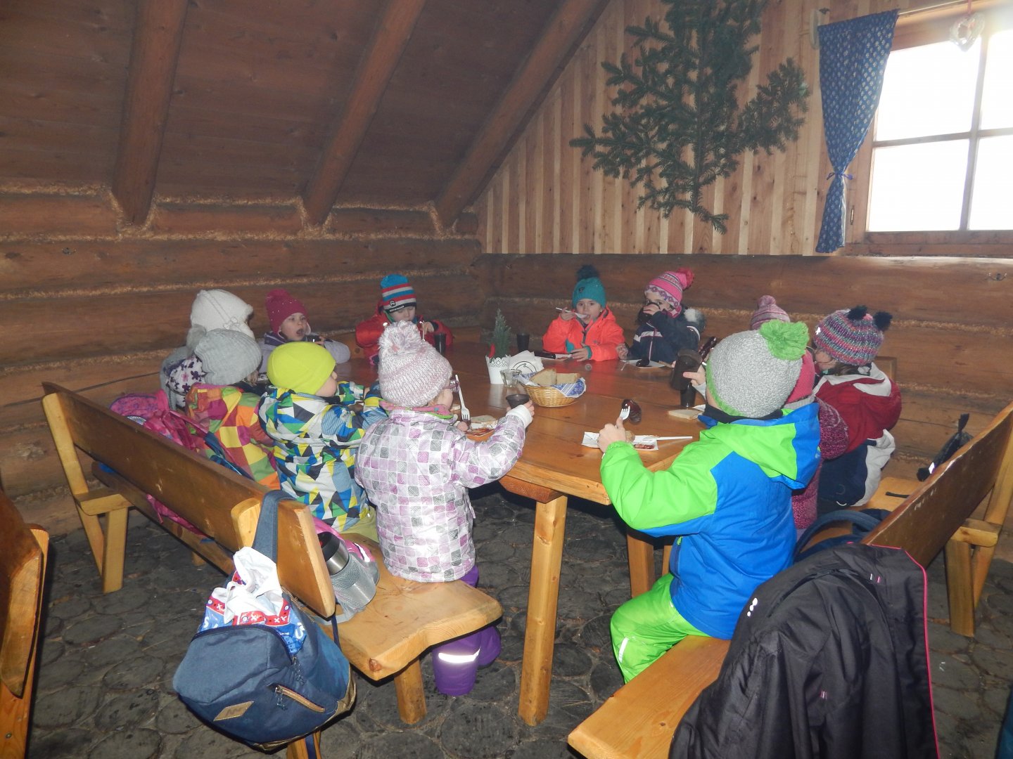 na obiad były opiekane kiełbaski oraz różne smakołyki spakowane przez mamusie :)