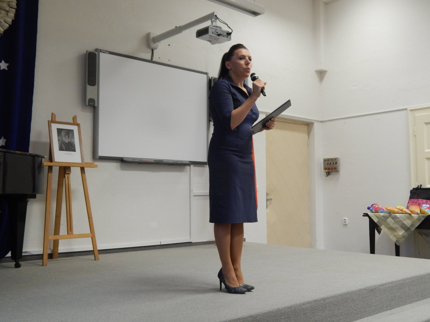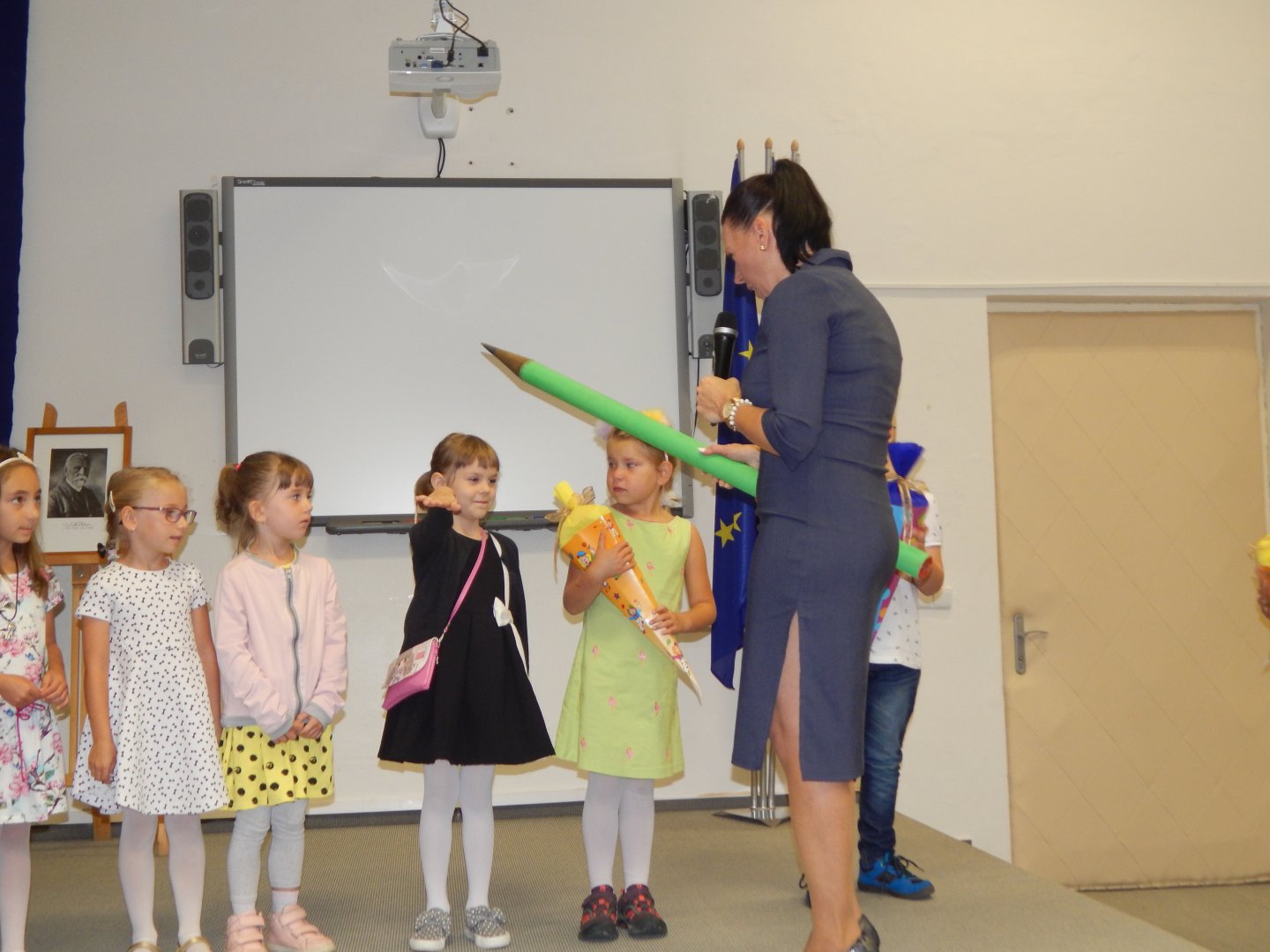 Pani dyrektor zagaiła uroczystość powitalną w auli SP