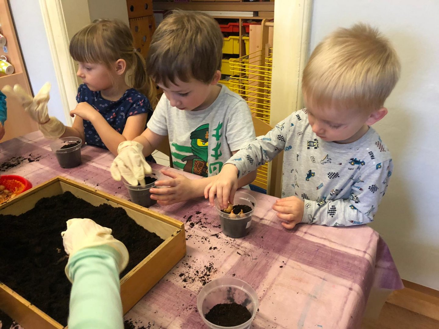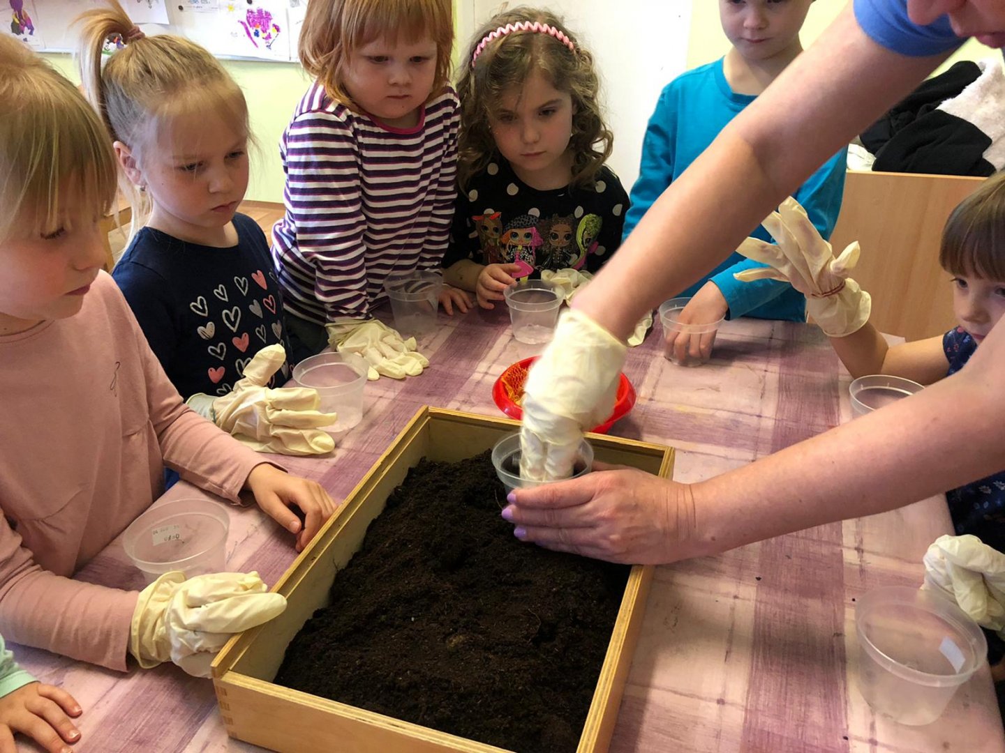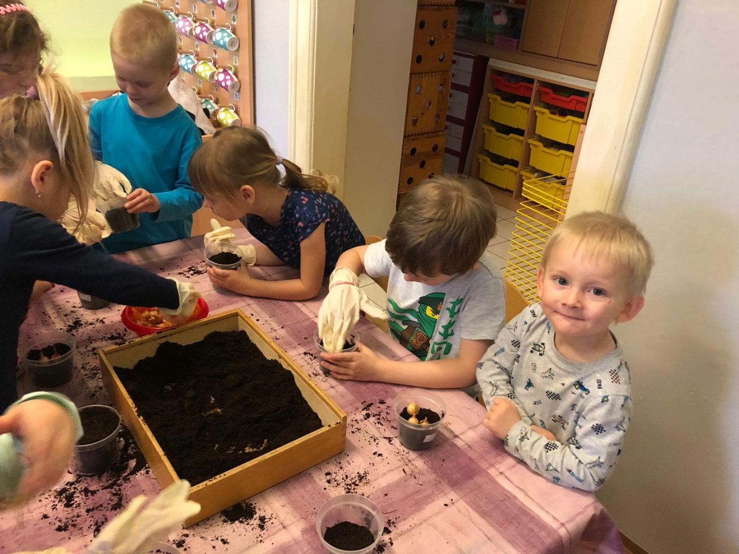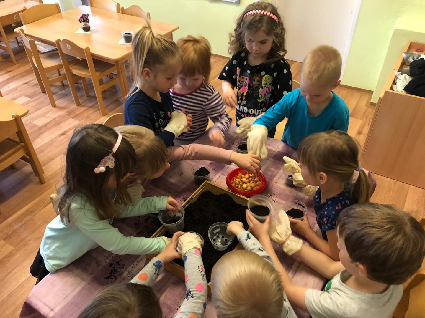 Dzieci w przedszkolu sadziły cebulkę:)