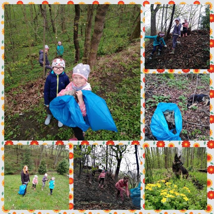 Elenka i Tobiaszek sprzątają las :)