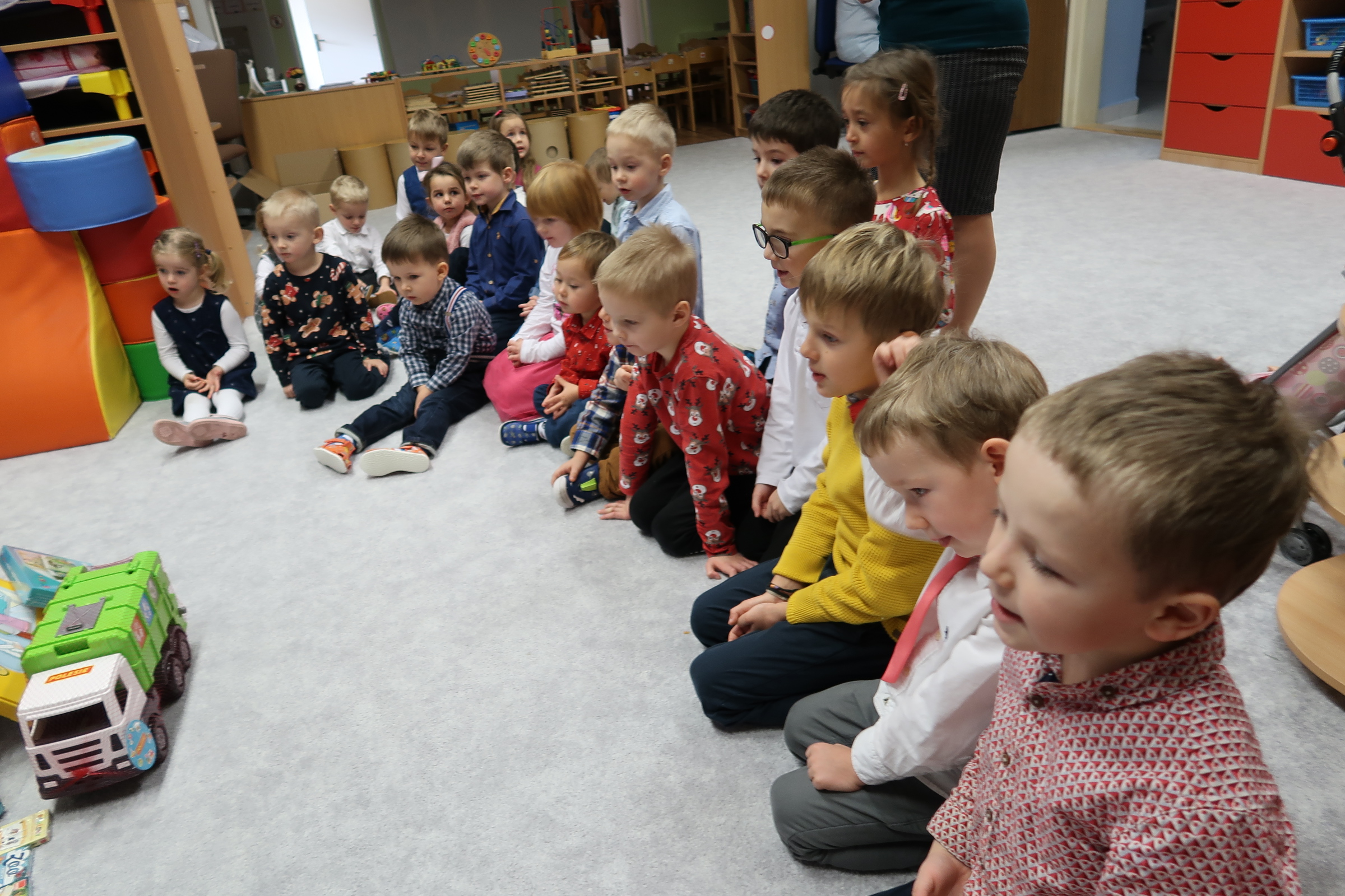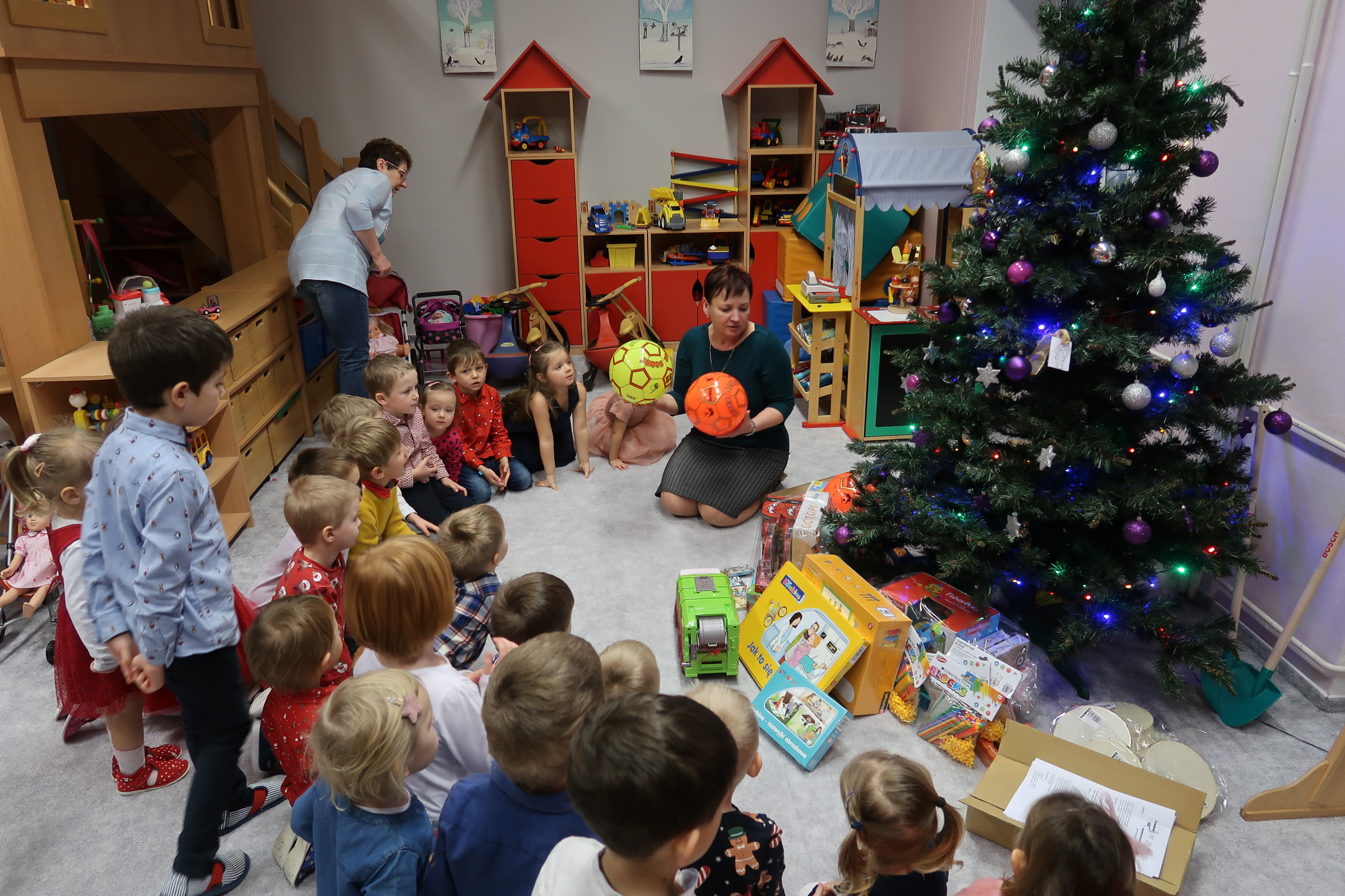 dzieci nie mogły doczekać się, by odpakować nowe zabawki :)
