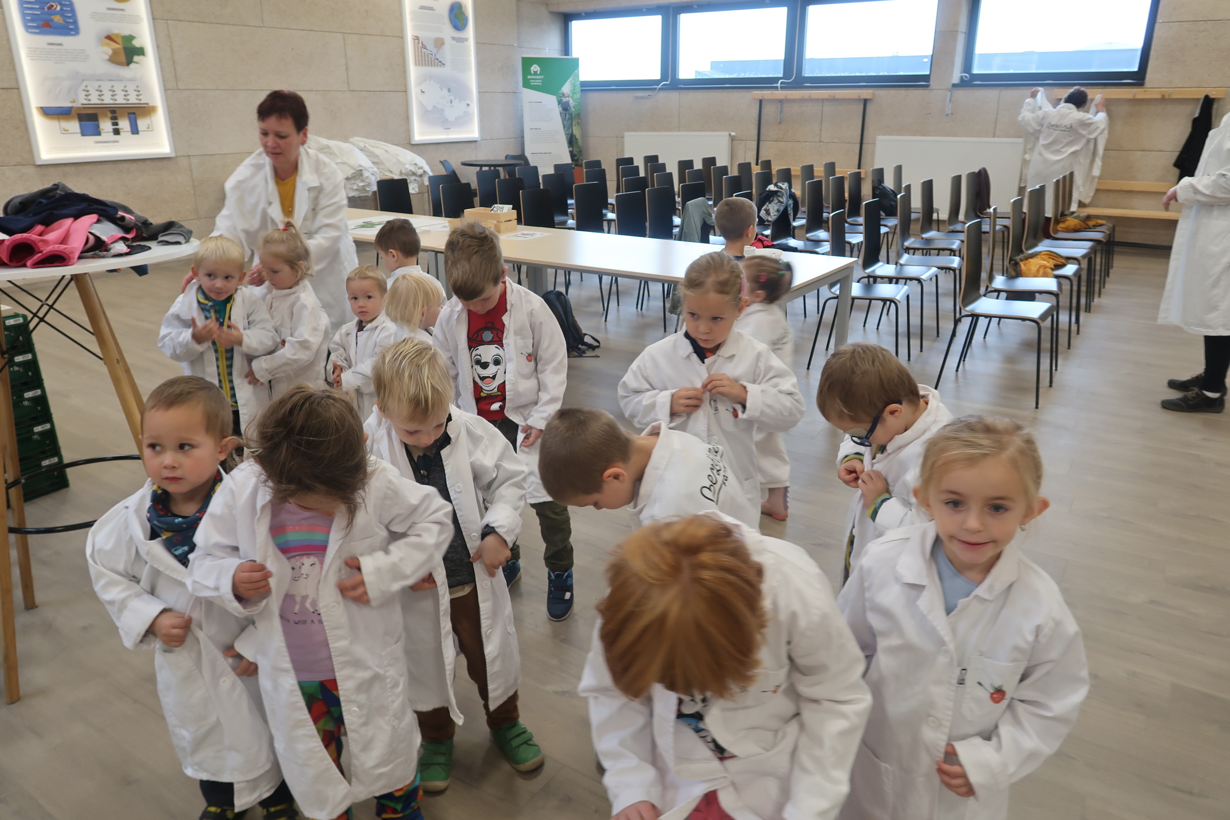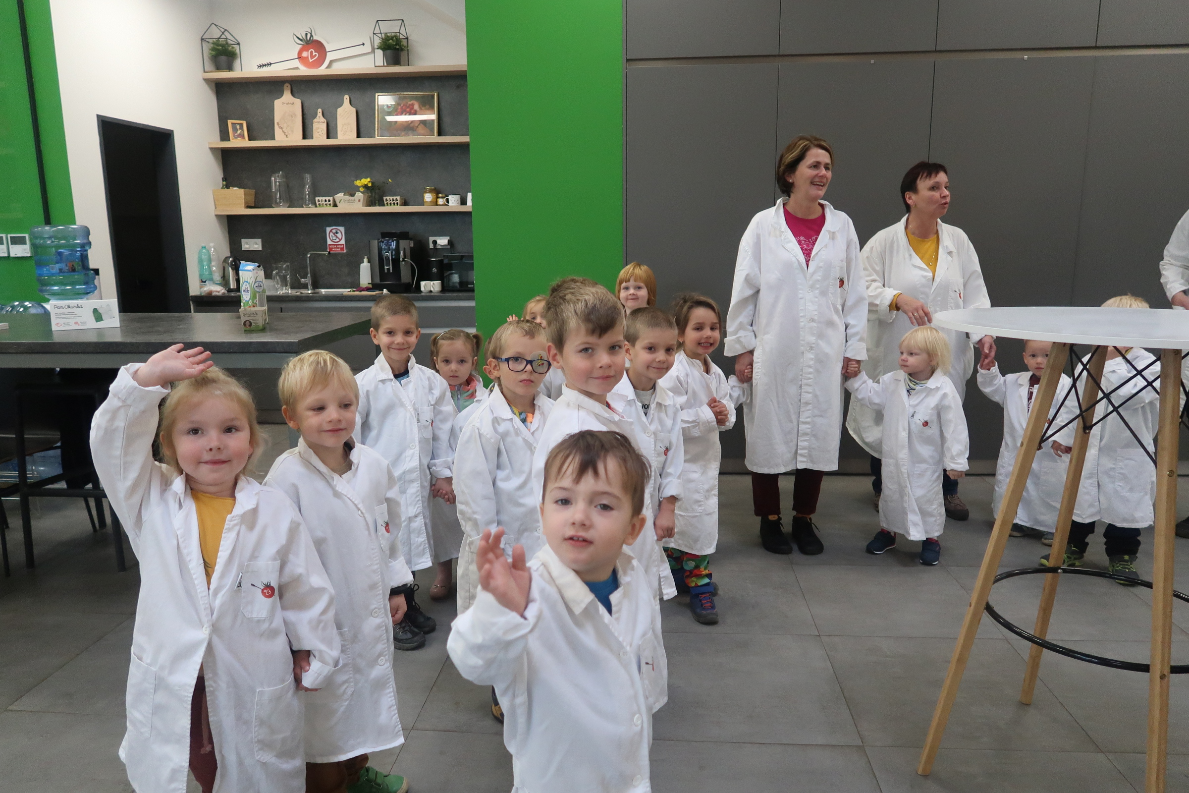 dla sterylności musieliśmy założyć białe płaszcze i desynfekować ręce i nawet buty :)